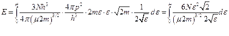 Суммарная энергия электронов электронного газа Средняя энергия приходится на 1 электрон: Эта энергия не связана с тепловым движением, носит сугубо квантовый характер. Значение внутренней энергии электронного газа (без вывода):