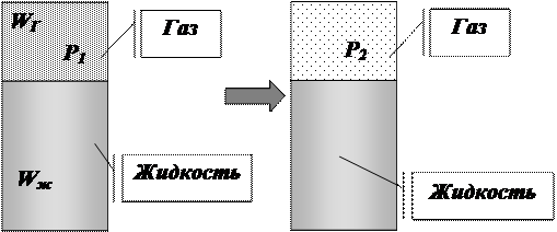 Если в закрытом сосуде жидкость находится в контакте с газом при давлении P1, то газ начнёт растворяться в жидкости. Через какое-то время