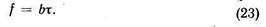 Движение дислокации вызывает пластическую деформацию кристалла, т.е. дислокация совершает работу. Учитывая это, можно оперировать представлением о действии некоторой силы на линию дислокации как на самостоятельный физический объект. Фактически же дислокация — не частица, не тело, а особая конфигурация в расположении атомов. Следовательно, ниже речь идет о силе, действующей на эту конфигурацию, и такую силу не следует смешивать с силами, действующими на атомы. Это наглядно видно из рассмотрения атомного механизма перемещения винтовой дислокации на рис. 32. В общем случае на дислокацию действуют силы разного происхождения: внешние силы, приложенные к поверхности кристалла, внутренние силы от действия поля напряжений вокруг соседних дислокаций, инородных атомов и других несовершенств. Ниже рассматривается случай действия только внешних сил (внутренние напряжения от других дефектов отсутствуют). Основная идея расчета состоит в следующем. Кристалл от внешнего источника получает дополнительную энергию в виде механической работы А. Вся эта энергия переходит в работу A д, совершаемую силой F д, действующей на дислокацию (A д = A). Рассмотрим краевую дислокацию на рис. 21 и 26. Однородные касательные напряжения τ от внешней силы F, совершив сквозной сдвиг верхней части кристалла относительно нижней на величину b, произведут работу A = Fb. Так как касательные напряжения действуют на площади l 1/ l 2, где l 1 — длина и l 2 — ширина кристалла, то сила, действующая в_ этой плоскости, F =τ l 1 l 2 и А= bτ l 1 l 2 . Нашей целью является вычисление силы f, действующей на единицу длины дислокации. Сила, действующая на всю дислокацию, F д = f l 2. При перемещении дислокации через всю длину кристалла l 1 работа этой силы A д = F д l 1= f·l 1 l 2. Она, как уже указывалось, равна затраченной работе A. Следовательно, f·l 1 l 2 = b·τ l 1 l 2. Откуда