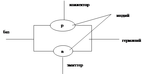 Такая структура, как расположена здесь, с таким расположением полупроводниковых материалов называется р-n-p типа или структура прямой проводимости. Если полупроводники поменять местами, то такой тип транзистора будет называться транзистором обратной проводимости или n-p-n типа. Электрический переход между базой и эмиттером называется эмиттерным переходом. Переход между базой и коллектором называется коллекторным переходом.