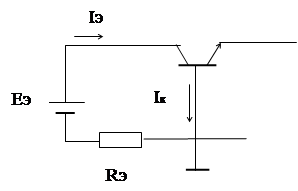В активном режиме прямое смещение эмиттерного перехода создается за счет включения постоянного источника питания U эмиттер базы (Uэб), а обратное смещение коллекторного перехода за счет включения U коллектора базы (Uкб).