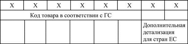 Товарная номенклатура внешнеэкономической деятельности: назначение, сфера применения, структура и содержание. Номенклатура – это система названий, терминов, употребляемых в какой-либо отрасли науки, техники, практической деятельности. Товарная номенклатура – это классификатор товаров. ТН ВЭД – это систематизированный перечень товаров, включающий наименования товаров, их кодовое обозначение, единицы измерения количества товаров, а также Примечания и Основные правила интерпретации. После изучения практики применения ГС в 1990 г. в СССР была создана и опубликована «Товарная номенклатура внешнеэкономической деятельности СССР». В настоящее время существуют следующие редакции ТН ВЭД: – ТН ВЭД России (последняя редакция – 2007 г.); – ТН ВЭД СНГ; – ТН ВЭД ЕврАзЭС. Рассматривая ТН ВЭД СНГ, нельзя не упомянуть, что в ее основу положена также и Комбинированная тарифно-статистическая номенклатура стран ЕС (КН ЕС). КН ЕС была построена на основе ГС и используется в пределах Евросоюза для целей внешней торговли. Код КН ЕС представлен ниже (рис. 3.2):