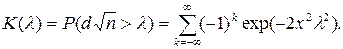 Из таблицы Колмогорова выбираем критическое значение