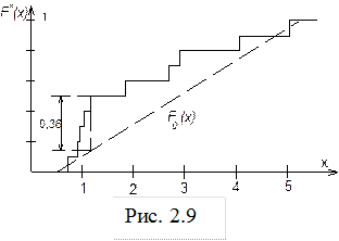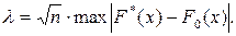 Максимальная разность по модулю между графиками F *(x) и F 0(x) равна 0,36 при х = 1,16. Вычислим значение статистики