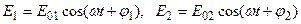 где Е01 и Е02, φ1 и φ2 – амплитуды и начальные фазы колебаний. Амплитуда результирующего колебания в рассматриваемой точке