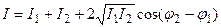 где последнее слагаемое, учитывающее взаимодействие пучков, называется интерференционным членом. Поскольку волны когерентны, то cos(φ2 – φ1) имеет постоянное во времени (но свое для каждой точки пространства) значение, поэтому