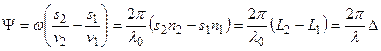 Произведение геометрической длины пути s световой волны в данной среде на показатель преломления n этой среды называют оптической длиной пути, а Δ=L2-L1 – оптической разностью хода. Если оптическая разность хода равна целому числу длин волн в вакууме Δ=±mλ (m=0, 1, 2,...), (2) то δ=±2mπ и колебания, возбуждаемые в точке М обеими волнами, находятся в одинаковой фазе. Следовательно, условие (2) является условием интерференционного максимума. Если Δ=±(2m+1)λ/2 (m=0, 1, 2,...), (3) то δ=±(2m+1)π и колебания, возбуждаемые в точке М обеими волнами находятся в противофазе. Следовательно, (3) является условием интерференционного минимума.