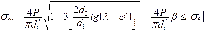 Отсюда внутренний диаметр резьбы болта, работающего на кручение и сжатие