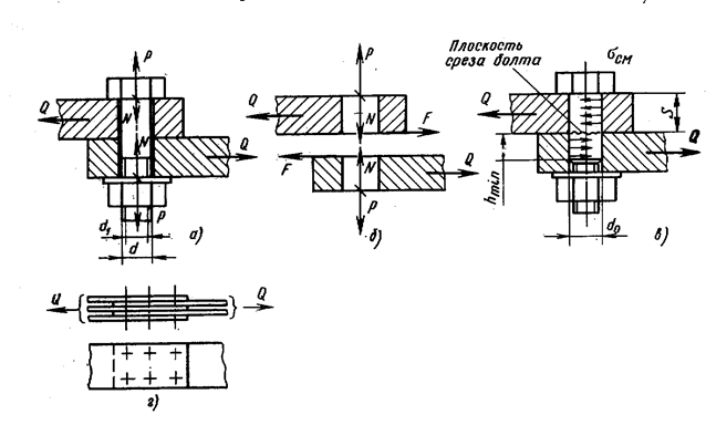 При установке болтов с зазором относительный сдвиг деталей отсутствует за счет затяжки болтов. При этом возникает сила трения