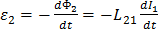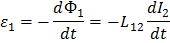 Магнитный поток, который создает ток I2 в контуре 1, равен При изменении силы тока I2 в первом контуре индуцируется э.д.с.