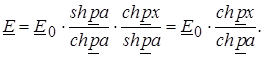 Так как величина a является числом, то характер зависимостей E/E0 и H/H0 определяется характеристиками материала шины и частотой. Эти зависимости представлены на рис. 18.9. Так как ch p·0≠0, то напряженность электрического поля не уменьшается до нуля. В то же время sh p·0=0, поэтому напряженность магнитного поля в середине шины (при x=0) равна нулю.