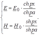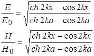 Рассмотрим, как изменяются соотношения E/E0 и H/H0 по сечению шины. Так как коэффициенты затухания и фазы для проводящей среды равны, то
