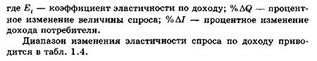 Таблица 1.4 Диапазон изменения эластичности спроса по доходу