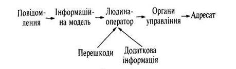 Згідно з цією схемою, людина-оператор отримує інформацію не безпосередньо від джерел повідомлення, а через інформаційну модель, і тому ця інформація може суттєво відрізнятися від вхідної за рахунок перекодування та можливостей технічних засобів. Це по-перше. По-друге, кількість інформації може зменшуватися через вплив перешкод (IПЕР) та збільшуватися завдяки додатковій інформації (IДОД). Остання складається з даних, що зберігаються в пам'яті людини, а також тих, що випливають з окремих розрахунків оператора, перевірки ним деяких логічних умов тощо. В цьому разі загальна кількість інформації буде така: