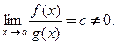 Функции одного порядка. Символ «О-большое». ОПРЕДЕЛЕНИЕ 3. Пусть функции f (x) и g (x) определены в некоторой проколотой окрестности точки а и отличны от нуля во всех точках этой окрестности. Эти функции называются функциями одного порядка при х ® а, если существует