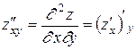 Сами частные производные могут являться функциями от нескольких переменных на некотором множестве. У этих функций тоже могут существовать частные производные по x и по y. Они называются вторыми частными производными или частными производными второго порядка и обозначаются zxx ¢¢, zyy¢¢, zxy¢¢ или Пример. Рассмотрим функцию