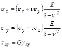 Таким образом перемещения любой точки пластины нам известны, тогда можно вычислить деформации по соотношениям Коши, а затем напряжения по соотношениям закона Гука: