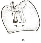 Рис. Этапы раскрытия полости II класса при окклюзионном доступе. Расширение полости производят путем маятникообразного движения бора в пределах здоровых тканей в щечно-язычном направлении до щечного и язычного закруглений коронки, не затрагивая углов, которые обычно маловосприимчивы к кариесу. При этом необходимо соблюдать особую осторожность, чтобы не повредить эмаль соседнего зуба.