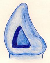 Если полость препарировалась прямым доступом, на язычную или вестибулярную поверхности она не выводится и имеет форму треугольника, основанием обращенного к десневому краю. Если полость препарировалась с язычным или вестибулярным доступом, она имеет более сложную конфигурацию.