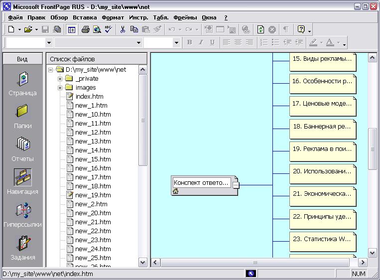 Далее добавляем страницу, вставляем баннер и панель навигации, в режиме форматирования подбираем тему.