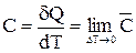 Истинная молярная теплоемкость С – это отношение бесконечно малого количества теплоты dQ, которое нужно подвести к 1 моль вещества, чтобы повысить его температуру на бесконечно малую величину dT, к этому бесконечно малому приращению температуры: