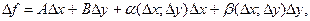 түрінде өрнектелсе, онда функциясын нүктесінде дифференциалданады деп атайды. Мұндағы , коэффициенттері , өсімшелерінен тәуелсіз ал, α (Δ x; Δ y) және β (Δ x; Δ y) шексіз аз шамалар, егер Δ x →0, Δ y →0.