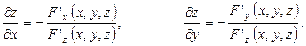 теңдеуі нүктесінің маңайында дифференциалданатын функциясын анықтайды және оның дербес туындылары келесідей анықталады: