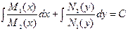 Бір жағында х, екіншісінде у болатындай теңдеуді екі бөлікке бөлеміз: . Сонда теңдеудің екі бөлігі екі функцияның дифференциалын береді, ендеше екі жағын жеке интегралдаймыз: