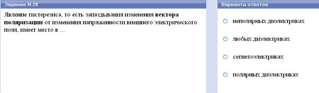 Для неполярного диэлектрика справедливы утверждения: • Диэлектрическая восприимчивость диэлектри-ка обратно пропорциональна температуре. • Поляризованность диэлектрика прямо пропор-циональна напряженности электрического поля. • Дипольный момент молекул диэлектрика в отсутствие внешнего электрического поля равен нулю. Для сегнетоэлектрика справедливы утверждения: • В определенном температурном интервале имеет место самопроизвольная поляризация в отсутствие внешнего электрического поля. • Диэлектрическая проницаемость зависит от напряженности поля. • В отсутствии внешнего электрического поля дипольные электрические моменты доменов равны нулю.