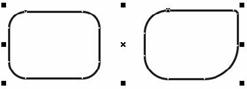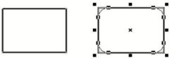 Перемістивши вузли на потрібну відстань, відпускаємо кнопку миші, кути прямокутника залишаться закругленими. Таким чином, легко отримуємо нову симетричну фігуру (Рис. 6.4, ліворуч).