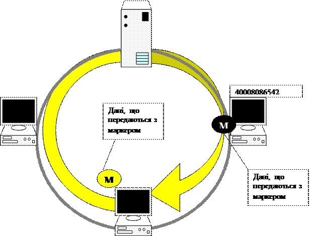 Рис. 9. Проста мережа з топологією «кільце» і передача маркера.