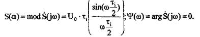 Застосувавши для перетворення виразу для S(j2?tf) формулу Ейлера: у вигляді функції типу (sin x)/x. Комплексна спектральна густина зображується на т.зв. спектральних діаграмах у вигляді амплітудного S(ω) та фазового ψ(ω) спектрів. Для прямокутного відеоімпульсу, парного відносно t = 0 S(ω) і ψ(ω) дорівнюють відповідно: