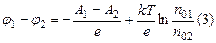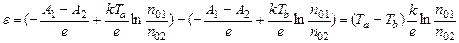 Где k-постоянная Больцмана В общем случае контакта металлов, различающихся и работой выхода и концентрацией свободных электронов к.р.п. из (1) и (2) будет равна