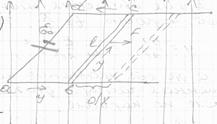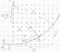 2. Частица в электрическом поле Пусть частица массой m и с зарядом e влетает со скоростью v в электрическое поле плоского конденсатора. Длина конденсатора x, напряженность поля равна Е. Смещаясь в электрическом поле вверх, электрон пролетит через конденсатор по криволинейной траектории и вылетит из него, отклонившись от первоначального направления на y. Под действием силы поля, F=eE=ma частица движется ускоренно по вертикали, поэтому