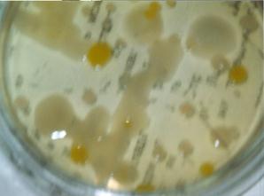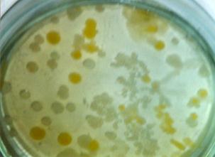 Рис. 9. Влияние электрогидравлической обработки на общую микрофлору сокостружечной смеси в зависимости от количества разрядов при напряжении 35кВ. а – контрольный образец; б – образец, обработанный 5-ю импульсами; в – образец, обработанный 10-ю импульсами.