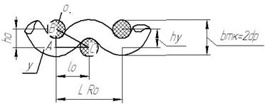 где Po, Py – технологическая плотность нитей основы (нитей утка), выраженная в тех единицах измерения, в которых выражена длина полуволны (мм). Как видим из выше приведенной формулы, единицей измерения геометрической плотности нитей в ткани является миллиметр (мм). Длина полуволны характеризует геометрическую плотность, и как видно из формулы (13.3) геометрическая плотность величина обратная технологической плотности. Геометрическая плотность нитей в ткани определяется из геометрической модели ткани, представляющей собой поперечный разрез ткани. При этом нити основы и утка приняты круглого сечения.