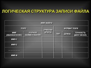 Понятие базы данных тесно связано с такими понятиями структурных элементов, как поле, запись, файл (таблица) – см. слайд.