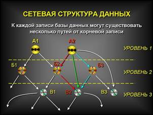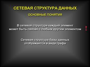 Структура называется сетевой, если в отношениях между данными порожденный элемент имеет более одного исходного.