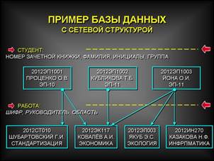 Сетевая структура базы данных обычно изображается в виде графа так, как это было показано на предыдущих слайдах.