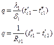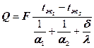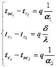 Основываясь на этой идее, выразим плотности тепловых потоков через отдельные слои и поверхности контактов с помощью формул для однослойной стенки: