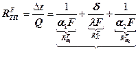 Величина обратная коэффициенту теплопередачи называется термическим сопротивлением теплопередачи.