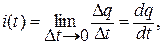 Электрический ток i(t) (в дальнейшем для краткости просто ток) в проводнике есть упорядоченное движение электрических зарядов под воздействием электрического поля. Количественно ток в каждый момент времени характеризуется скалярной величиной i = i(t) называемой мгновенным значением тока (1.1)