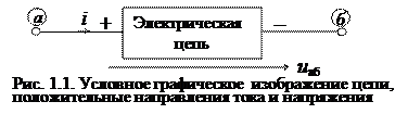 где Δ q – электрический заряд, прошедший за время Δ t через поперечное сечение проводника. В любом проводнике упорядоченное перемещение носителей заряда (т.е. ток) происходит в одном из двух возможных направлений. Поэтому ток также имеет одно из двух направлений. Выбор условно-положительного направления тока при расчетах может быть произвольным. Это направление показывают стрелкой (рис. 1.1). Если в результате расчетов, выполненных при выбранном направлении, ток получится со знаком плюс, то его направление, т.е. направление перемещения положительных зарядов, совпадает с направлением, выбранном за положительное; если ток будет отрицательным, то его направление противоположно условно положительному.