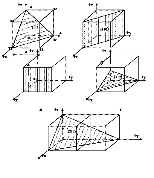 Рис. 2.6. Примеры кристаллографических плоскостей в кубической решетке