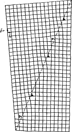 Рис. 16.3 Граница кручения На рис. 16.2 и 16.3 показаны простейшие дислокационные модели строения границ. В более общем случае малоугловая граница содержит ряды дислокаций разной ориентации и с разными векторами Бюргерса. Симметричная граница наклона, являющаяся стенкой краевых дислокаций одного знака с параллельными векторами Бюргерса и параллельными плоскостями скольжения, может легко перемещаться при коллективном скольжении всех дислокаций, входящих в стенку. Такую границу называют скользящей. В более общем случае малоугловой границы она не может скользить из-за непараллельности плоскостей скольжения составляющих ее дислокаций. Миграция границы может происходить только диффузионным путем, когда в зависимости от ориентации одни экстраплоскости достраиваются, а другие сокращаются, растворяясь с кромки. Например, на рис. 2 миграция в горизонтальном направлении несимметричной границы наклона как единого целого должна быть связана с переползанием дислокаций, векторы Бюргерса которых перпендикулярны направлению миграции. Угол разориентировки зерен или субзерен q определяет энергию малоугловой границы: