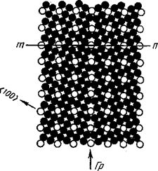 В 1949 г. Кронберг и Вильсон ввели представление о специальных границах, отвечающих некоторым особым разориснтиров-кам соседних зерен и отличающихся пониженной энергией благодаря более совершенному строению, чем произвольные границы (границы общего типа). При развороте двух одинаковых решеток вокруг общей кристаллографической оси на определенный угол часть одной решетки совпадает с узлами другой решетки. Такие совпадающие узлы, например вдоль прямой тп на рис. 5, образуют свою трехмерную «сверхрешетку» — общую для обоих зерен решетку совпадающих узлов (РСУ). Характерным дискретным углам поворота соответствует определенная плотность совпадающих узлов, т. е. их доля по отношению ко всем узлам решетки металла- Например, на рис. 5 при угле поворота 36,9° вокруг оси <001> РСУ образована каждым пятым атомом соседних зерен, т. е. плотность совпадающих узлов равна 1/5. Для характеристики РСУ чаще используют обратную плотность совпадающих узлов, обозначаемую 2, – число узлов решетки метала, приходящихся на один совпадающий узел в общей сверхрешетке. Например, в случае, изображенном на рис. 5,2=5. При любой разориентировке решеток соседних зерен можно найти некоторое число совпадающих узлов. Но при низкой их плотности понятие об общей сверхрешетке практически теряет смысл для анализа строения границ зерен. Обычно рассматривают решетки совпадающих узлов при значениях S, находящихся в интервале 3—25 (при S=1 угол разориентировки равен нулю). Если граница зерен располагается вдоль плоскости с максимальной плотностью совпадающих узлов в РСУ (см. рис. 16.5), то из-за большого числа атомов, принадлежащих одновременно решеткам соседних зерен, структура границы совпадающих узлов весьма совершенна и соответственно ее энергия минимальна. Такая граница является специальной. В модели РСУ плоскость специальной границы параллельна плоскостям РСУ с низкими индексами.