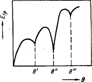 Сумма энергий парных взаимодействий атомов в пределах каждого сегмента Р дополнительно уменьшается при индивидуальных смещениях атомов из исходных узлов так, чтобы улучшился контакт соседних зерен вдоль сегмента повторяемости (такая релаксация отдельных атомов на рис. 16.9, б не показана). При этом по обе стороны от границы решетка должна деформироваться на расстояние, соизмеримое с длиной сегмента Р. Избыточная энергия (в расчете на единицу площади границы) тем меньше, чем меньше сегмент повторяемости.