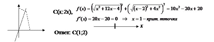 Замечание 1: Если функция y=f(x) на отрезке [ a;b ] имеет лишь одну критическую точку и она является точкой максимума (минимума), то в этой точке функция принимает наибольшее (наименьшее) значение. Пример: На прямой y=2x найти такую точку, чтобы сумма квадратов расстояний от нее до точек А(2;0) и в(0;4) была наименьшей.