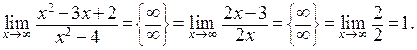 Раньше этот пример решался сравнением степеней переменного в числителе и в знаменателе, когда мы выносили наибольшую степень из числителя и знаменателя, соответственно.