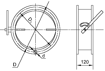 Следующим элементом системы вентиляции является дроссель-клапан (клапан) Дроссель-клапаны предназначены для регулирования количества воздуха и невзрывоопасных газо-воздушных смесей, агрессивность которых по отношению к углеродистым сталям обыкновенного качества не выше агрессивности воздуха, с температурой 80°С, не содержащих липких веществ и волокнистых материалов, с содержанием пыли и других твердых примесей в количестве не более 100 мг/см3. Дроссель - клапаны применяются в системах вентиляции, кондиционирования воздуха, воздушного отопления и других санитарно - технических системах с рабочим давлением до 1000 Па (100 кгс/м2)